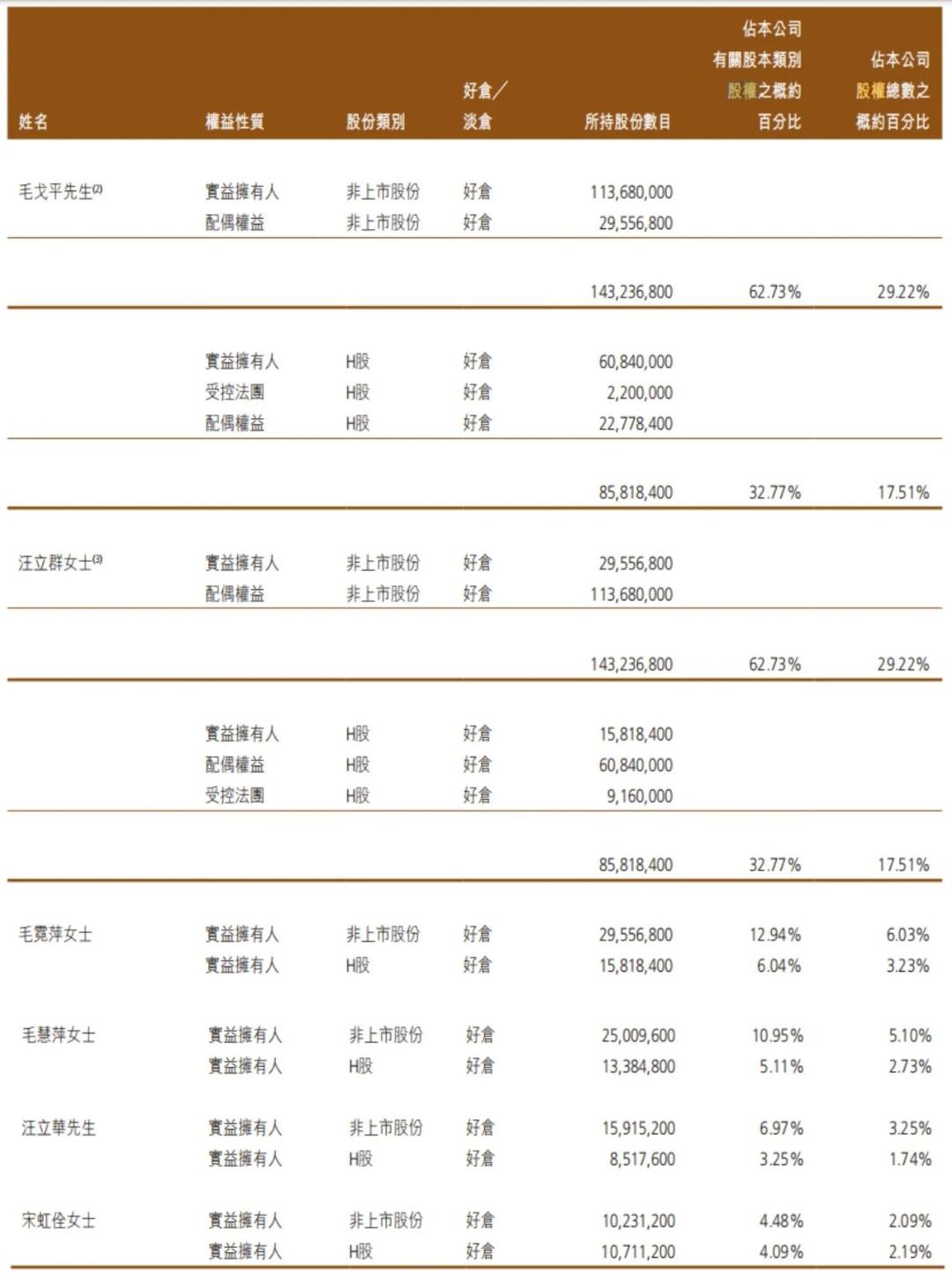 从减持主体看,毛戈平全部6位执行董事均参与了此次减持,且除宋虹佺外,其余董事均为公司创始人毛戈平的亲属。其中,汪立群是毛戈平的配偶,毛霓萍、毛慧萍均为毛戈平的姐姐,汪立华为汪立群弟弟。