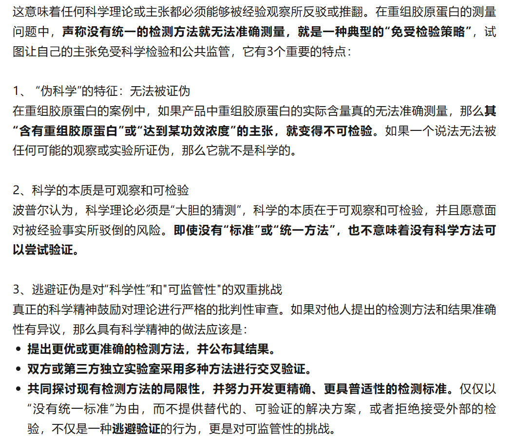 令人玩味的是,华熙生物最终检测了自家产品的重组胶原蛋白成分,并提出了关于检测方法的建议。一招“隔山打牛”,清晰地宣告了争夺的实质:并非较真成分,而是关于定义标准的权威之战。