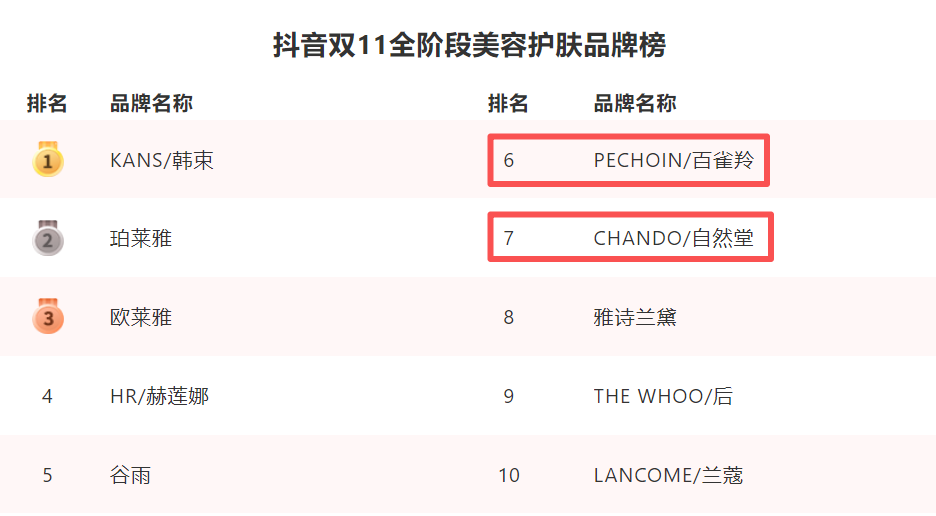 头部国货品牌面临的,是一个内外夹击的残酷战场。对外,需要与历史悠久的国际巨头争夺有限的榜单席位。