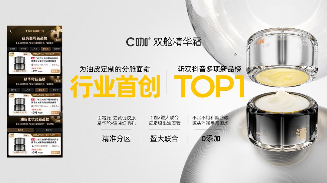 在多数品牌对油皮护理仍停留在“泛控油”阶段时,C咖通过千万级油皮用户数据调研,科学定位油皮精准护肤的核心痛点,并以此作为品类创新的突破口。