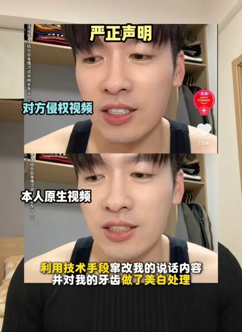 1月11日,博主“even3不知”发视频指控高露洁直播间盗用其2025年2月发布的牙贴片视频,通过AI技术篡改原声及画面,将内容嫁接为高露洁牙膏的“牙缝修复”功效,并美白牙齿以增强视觉效果。