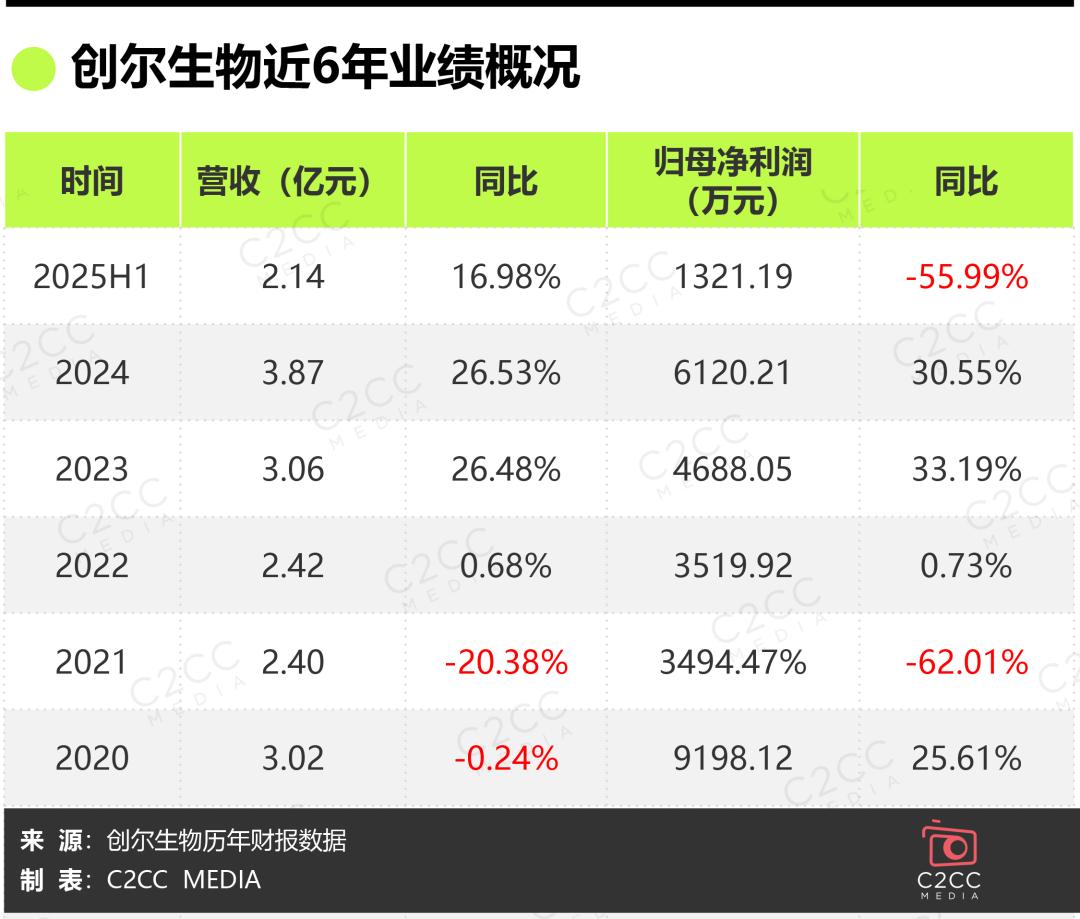 反观创尔生物,2024年营收为3.87亿元,2025年上半年营收2.14亿元,虽同比增长,但基数与增速均难以匹敌。