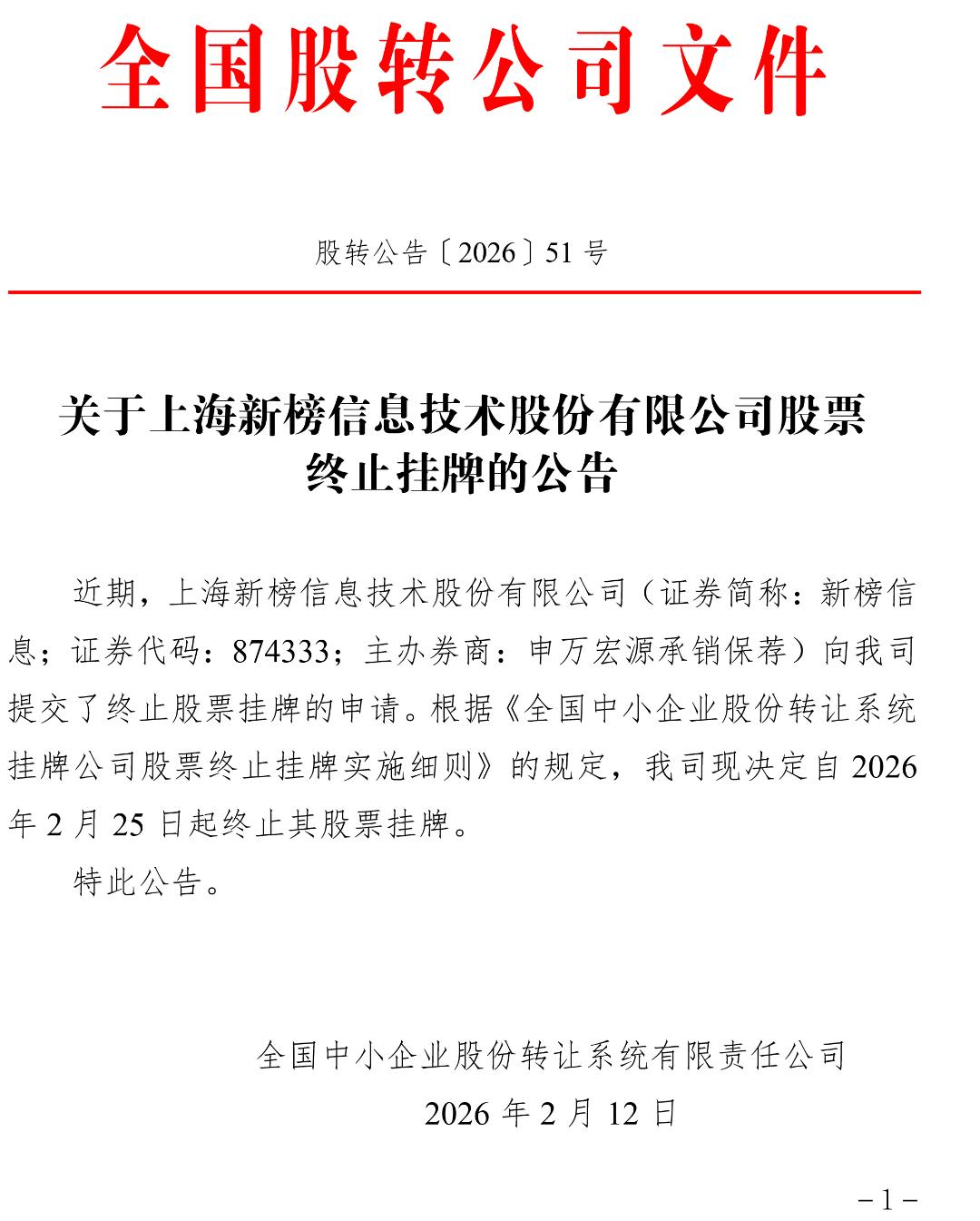 近日,据全国中小企业股转系统公告,上海新榜信息技术股份有限公司因自身经营发展需要,决定自2026年2月25日起终止其股票挂牌,这意味着这家曾红极一时的新媒体内容创业服务平台,挂牌不足两年便悄然选择退市。