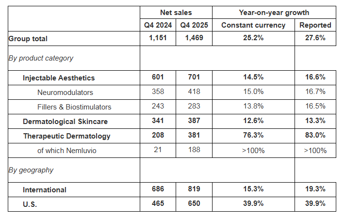 高德美首席执行官弗莱明・恩斯科夫表示,“凭借清晰的战略聚焦、高效执行、科学驱动创新,以及我们成熟的整合皮肤科战略成功落地,我们实现了创纪录的财务业绩,所有产品品类与地区均实现全面净销售额增长。”