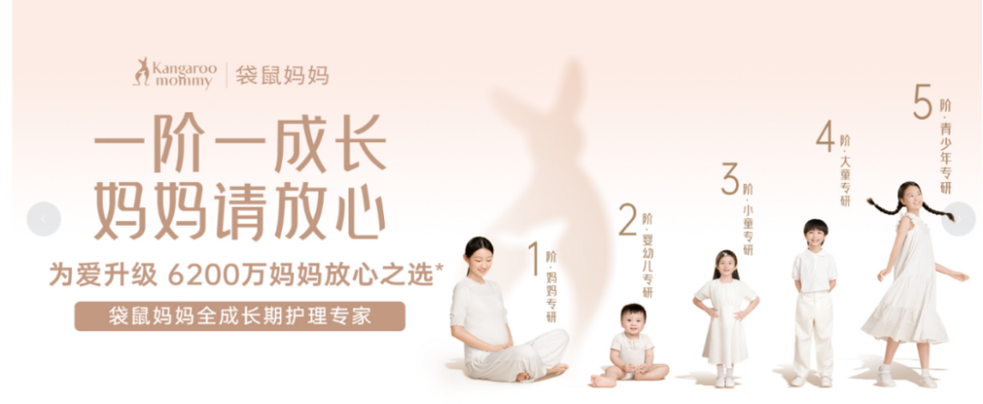 在夯实孕产护肤核心优势的基础上,袋鼠妈妈近年加速品类扩张,按照人群定位划分出四大产品系列,将服务范围从准妈妈延伸至产后妈妈、婴童乃至青少年,实现全年龄段母婴护肤需求全覆盖。