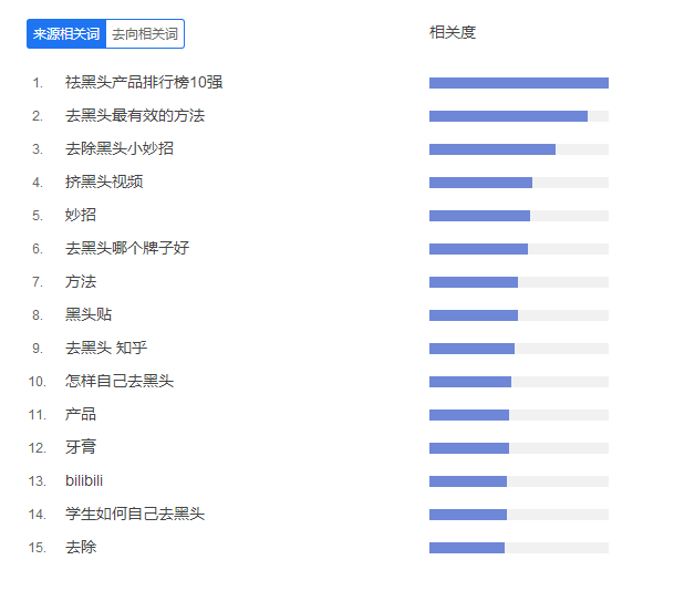 根据百度指数检索可见,“去黑头”的整体搜索趋势呈现上升趋势,且消费者大多对去黑头的产品及方法表现出很大的热忱,综合看来,“去黑头产品排行榜10强”、“去黑头最有效的方法”、“去除黑头小妙招”三大来源相关词排行最为靠前。