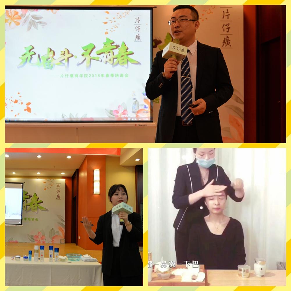 董事长助理兼市场总监齐云飞先生在会上为学员们带来专业技能培训,从市场营销、促销活动开展及沟通技巧三大方面展开,教授学员如何进一步做好活动的策划、组织和执行。作为国家二级营销师,曾就职于欧诗漫、彭氏集团、广州澳希亚实业,齐云飞先生有着十余年化妆品行业从业经验,其课程更是赢得了学员们的满堂喝彩。另外,片仔癀化妆品培训讲师也在本次会上结合片仔癀中医药文化底蕴,为学员们带来“产品搭配使用+护肤按摩手法”新型体验课程,通过视频展示及现场演练相互结合,便于学员快速学习掌握。