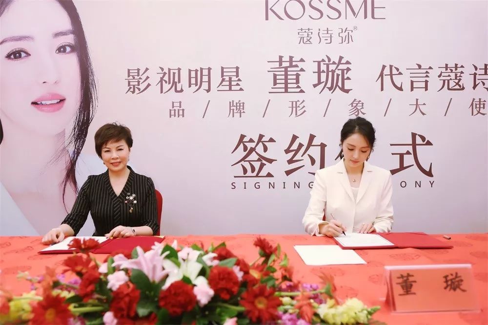 △ 蔻诗弥董事长吴香娟女士与品牌形象代言人董璇正式签约