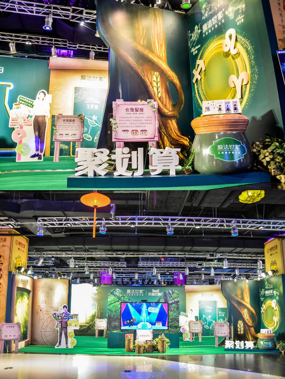 除了明星IP营销之外,膜法世家在其十一周年庆之际,还于广州时尚天河城打造了一个星座主题快闪店,即“膜法世家——膜法星座美肤颜究所”。据悉,现场设置的含有人体识别、AR合影等功能的“魔法墙”,让众多消费者不仅可以和漫画人物同框合影、做游戏,还能通过场景式体验沉浸“膜法”的护肤之中。