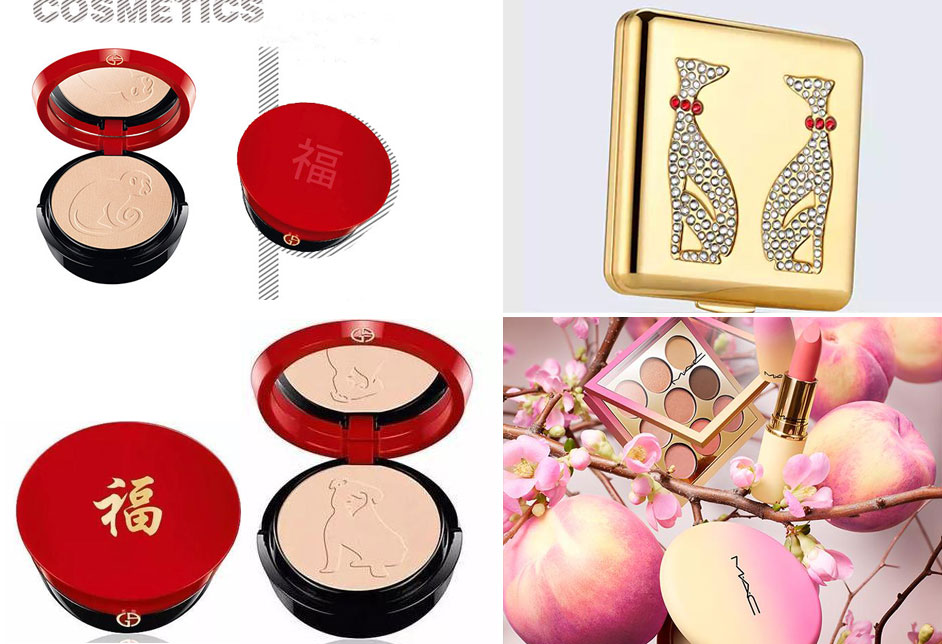 比如,阿玛尼多年执着利用每年的生肖,推出新春限定款,包装上一个大而醒目的“福”,内部的粉饼印有是猴、狗等生肖,简直丑的不要不要的;如出一辙的是,雅诗兰黛也同样执着于生肖,推出2018新年限量幸运金犬款粉饼……此外,YSL的红流苏,M.A.C的蜜桃等,都成为了诸多媒体和网友关注的对象。