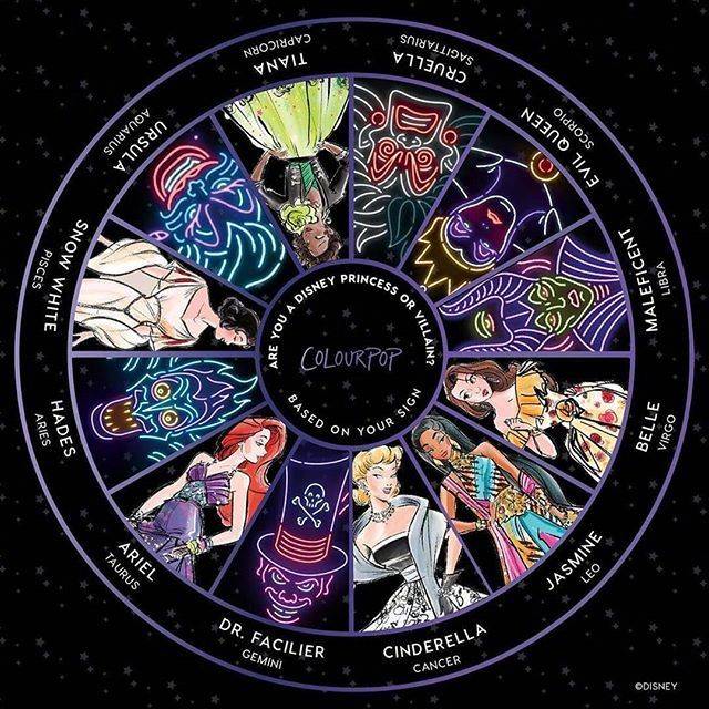 ColourPop在官方INS分享了公主与反派的十二星座图表。