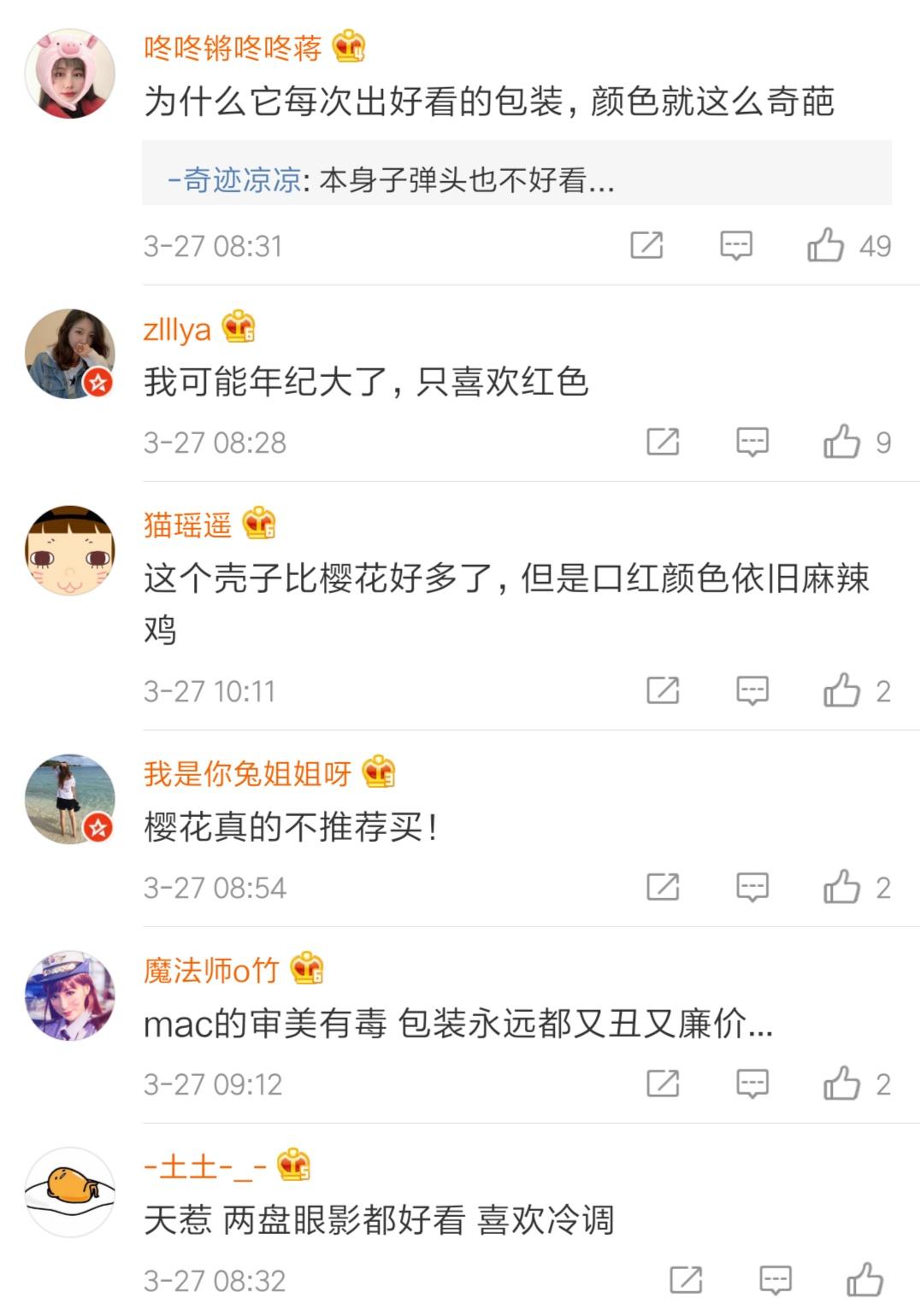 网友@吃肉sama是如此评价MAC春季限定樱花系列的 :