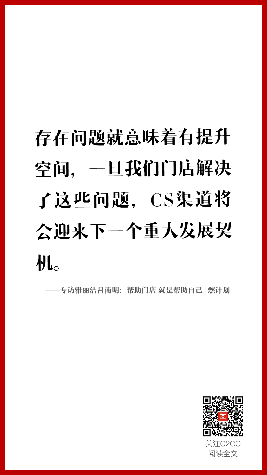“帮助门店,也是帮助我们自己,门店生意火爆了,雅丽洁自然也会获得更好的发展。”吕南明多次强调的“成人达己,和合共赢”理念就基于此,这也正是雅丽洁历经了22年的发展,始终与CS渠道唇齿相依,坚持发力线下的原因所在。