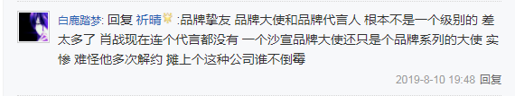 显然是不能与代言人身份相媲美的,