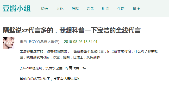 虽然宝洁“全线代言”的身份听起来很有排面,