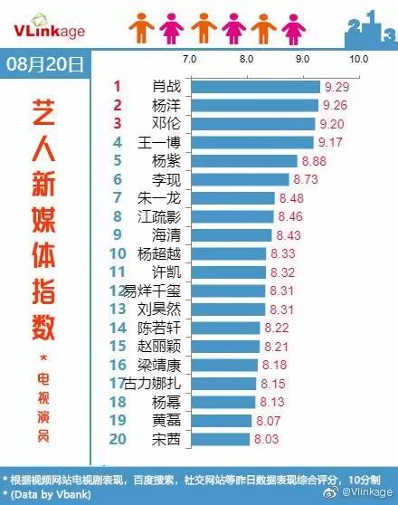 Vlinkage的寻艺指数电视演员新媒体指数中,