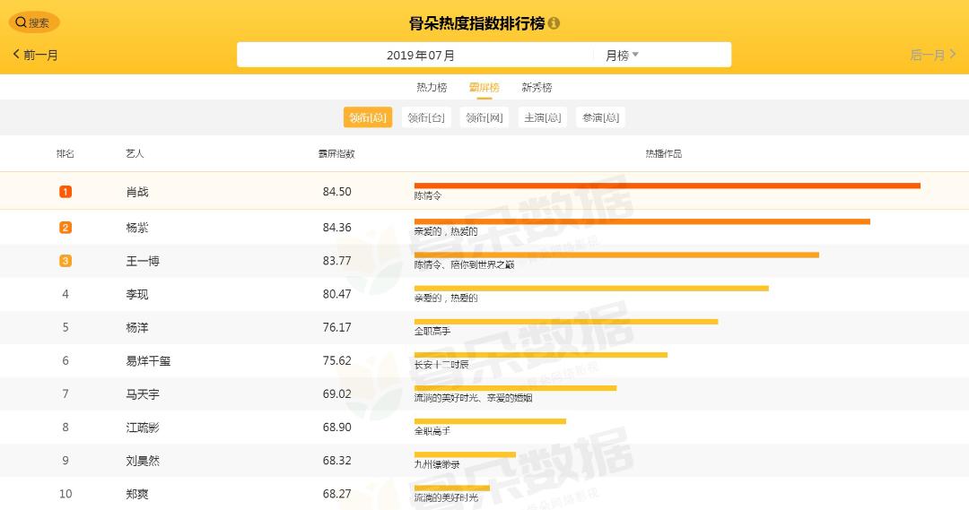 无论是当日热力榜还是7月月度热力榜,