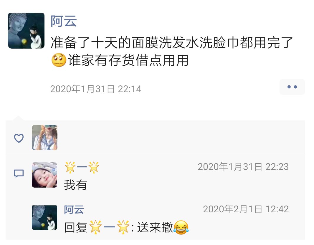 小迷糊是我在去年双十一99块钱三套抢的,性价比真的非常高;姬存希是做微商的姐姐送的。如果隔离期间需要购买护肤品,会考虑线上下单线下派送的实体门店,但是所在的村庄好像没有这样的服务。