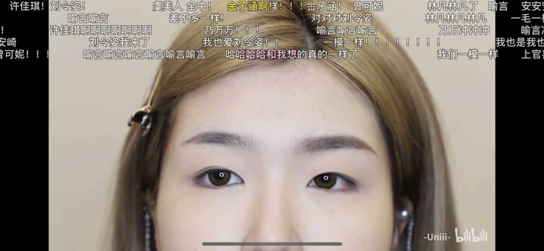 除了看频率最高的爱豆易烊千玺视频外,小汤圆刷的频次第二的就是一个名叫@uniii的B站时尚UP主,其在B站有20.6万的粉丝,最喜欢看的是其美妆教学视频。
