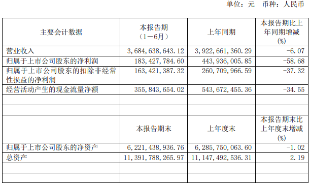 据报告显示,今年上半年,上海家化实现营业收入36.85亿元,同比下降6.07%;归属母公司净利润1.83亿元,同比下降58.68%。