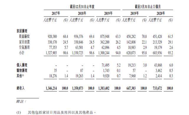据招股书显示,2020年一季度,朝云集团个人护理板块营收4386万元,同比增长128%。其中,创立于2008年的润之素是个护板块的主力品牌,目前拥有护手霜、SOD蜜、洗手液、洗发露等多个品类。2019年,该品牌市场零售额达3.5亿元,营收达13.83亿元。