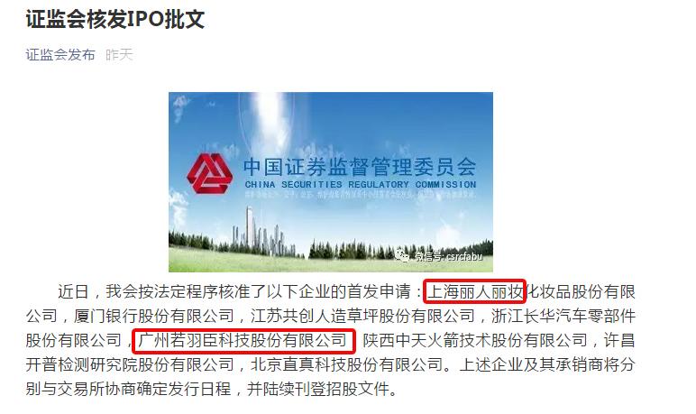 “数说上市” | 扎堆过会,丽人丽妆/若羽臣获IPO批文