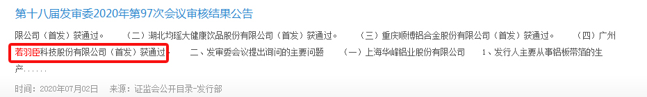 2020年6月11日,中国证券监督管理委员会第十八届发行审核委员会2020年第89次发审委会议表示,广州若羽臣科技股份有限公司(首发)暂缓表决。