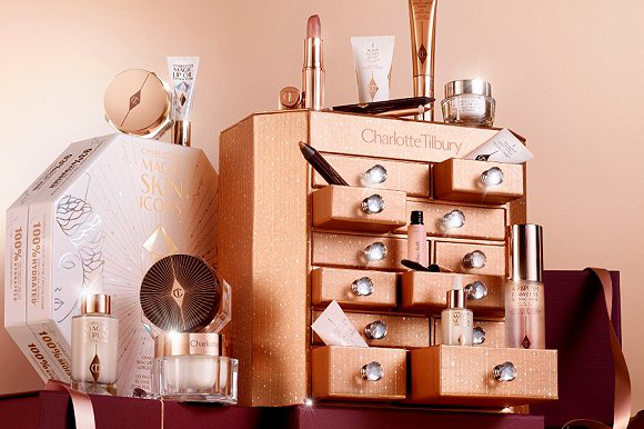 Charlotte Tilbury的2020圣诞限量系列中包括12色限定眼影盘、4色眼影盘、迷你唇膏套装、眼影霜、持妆喷雾等多款产品。
