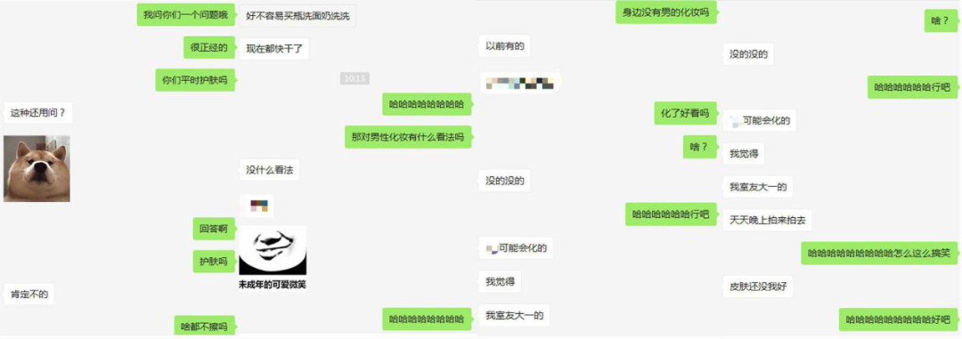 笔者身边糙汉居多,平时下下市场,跑跑工地,在询问对男士化妆品的相关看法时,却还比较包容。有位做采购的的男性朋友说,自己平时不化妆,连基本的肌肤护理都不做,之前买的洗面奶都没用过几次,甚至都干了,还忍不住吐槽自己的室友,每天晚上拍拍拍,皮肤却没有自己好,但他却对男士化妆行为没什么看法,不支持也不反对。