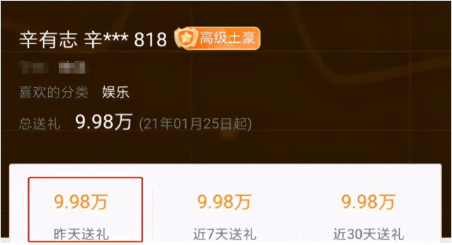 在辛巴账号解封当晚,辛有志一边在互动区与粉丝积极互动,一晚上涨粉10万+;与此同时,辛有志又现身快手多个网红直播间,狂刷礼物9.98万元,以进到快手其他主播的直播间打榜,释放回归信号。