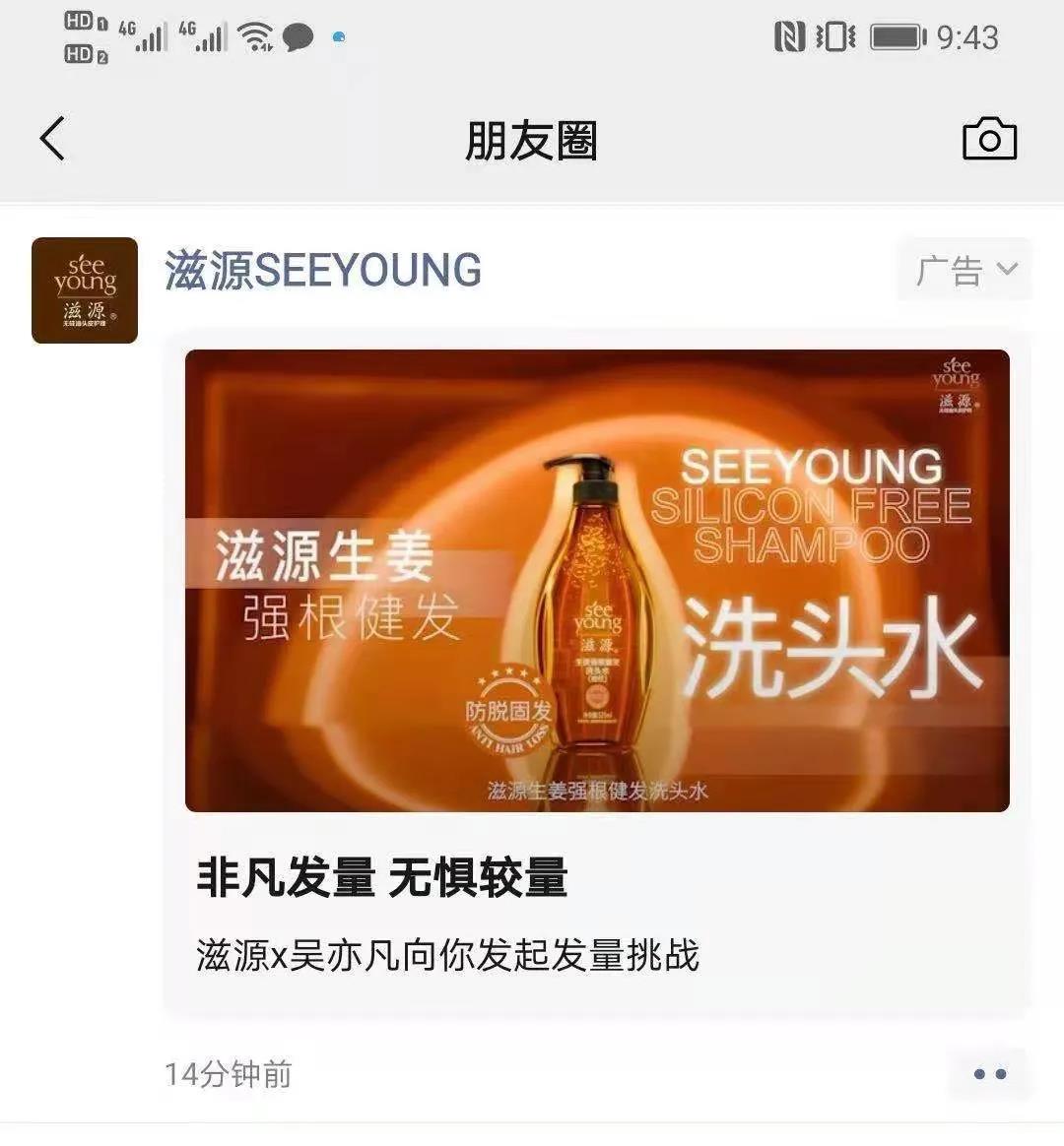 比如微博开屏、微信朋友圈广告、以及抖音topview,一来可以寻找合适的用户激活逻辑,最大限度地持续收割代言人流量,进而提升滋源品牌在行业内的影响力;二来也可有效培育品牌私域流量,沉淀用户流量池。