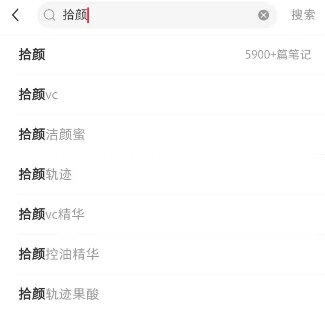 在小红书以“拾颜”为关键词搜索,