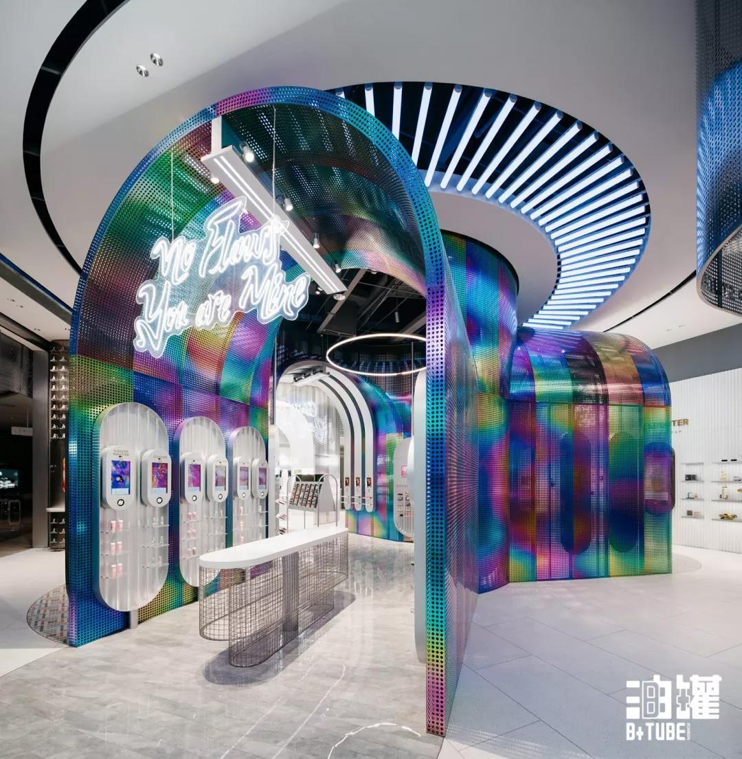 由于模仿门槛低,一开始较为新颖的空间设计也面临着同质化的风险,多彩展示墙、白色与橘色的鲜明配色、银色金属的科技感设计都能在不只一家零售品牌中看到。