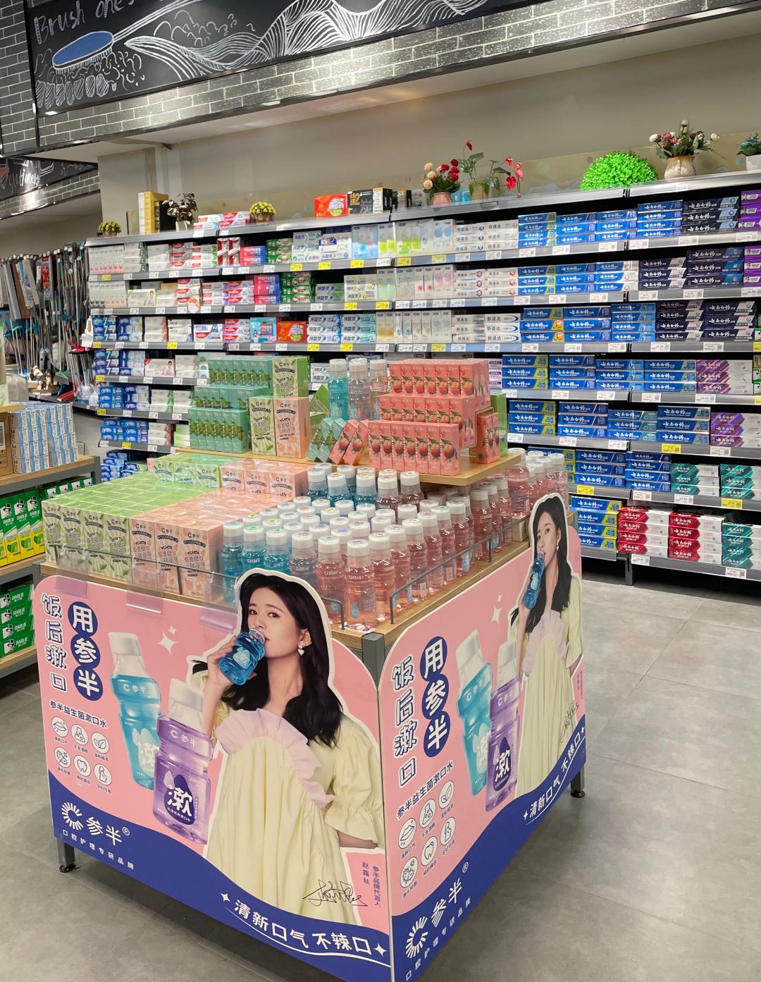 也正因为更懂用户,参半在渠道策略上和传统口腔护理产品有所差异。比如,为了让口腔产品具备一个方便购买、可快消化的场景属性,参半的产品就陈列在了药店收银台的位置。