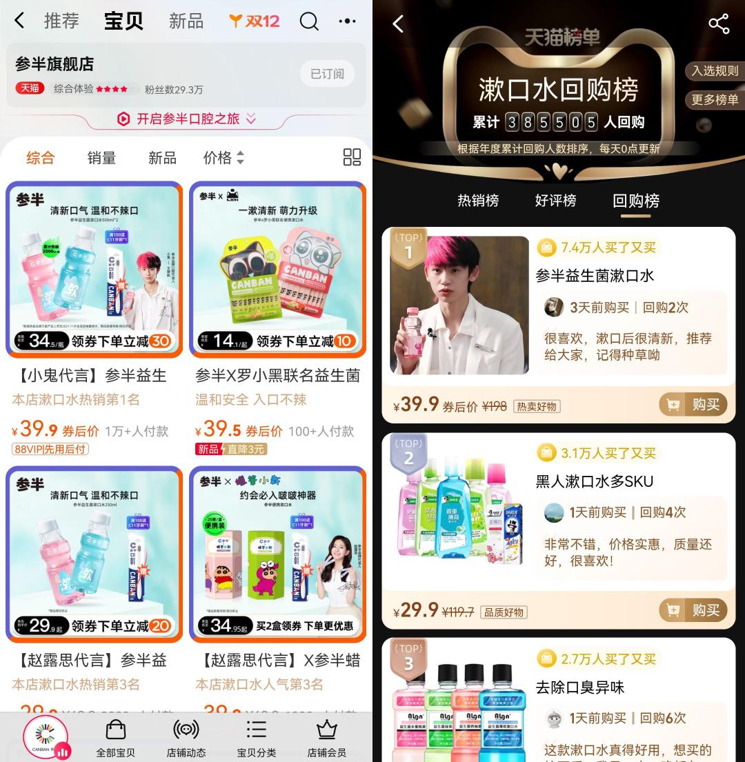 作为超级大单品,参半益生菌漱口水上线80天,便达成了销售额突破1亿元的里程碑。自2020年9月底上线至今,该爆品累计销量已突破2000万瓶,稳坐天猫漱口水回购榜TOP1。之所以能成功打造这样一个超级爆品,也是因为参半更能够从用户的视角去做产品。