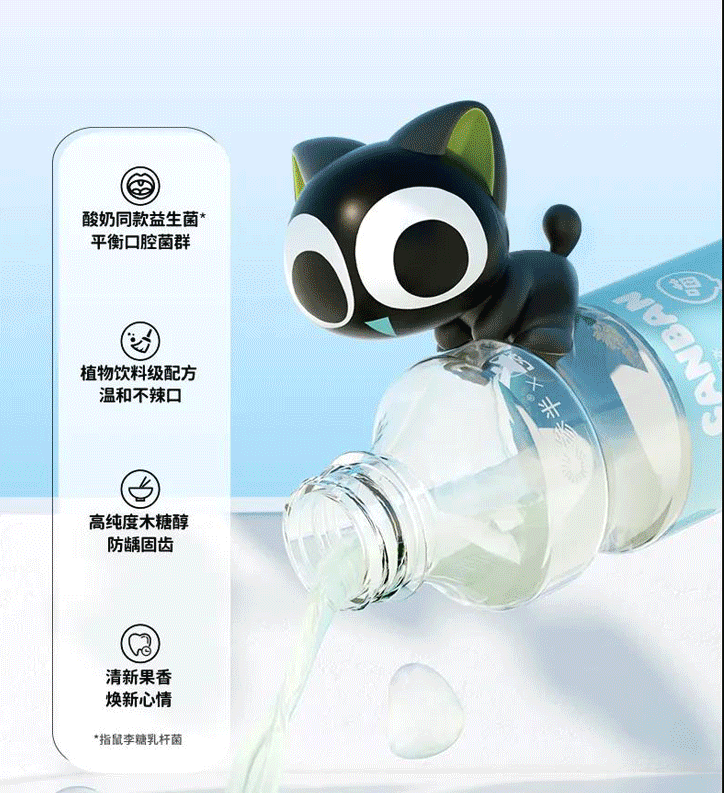 乘国潮之风,参半也积极地与国潮大热IP强强联合。10月份,参半推出了与国潮IP罗小黑的联名产品,包括参半x罗小黑联名口喷、联名益生菌漱口水以及联名黑萌礼盒。其中,联名漱口水的每一个口味都对应一个罗小黑或罗小黑的好朋友们,实力圈粉。实际上,参半在选择IP时,也是在用户意见调研的基础上,做出的正确决定。