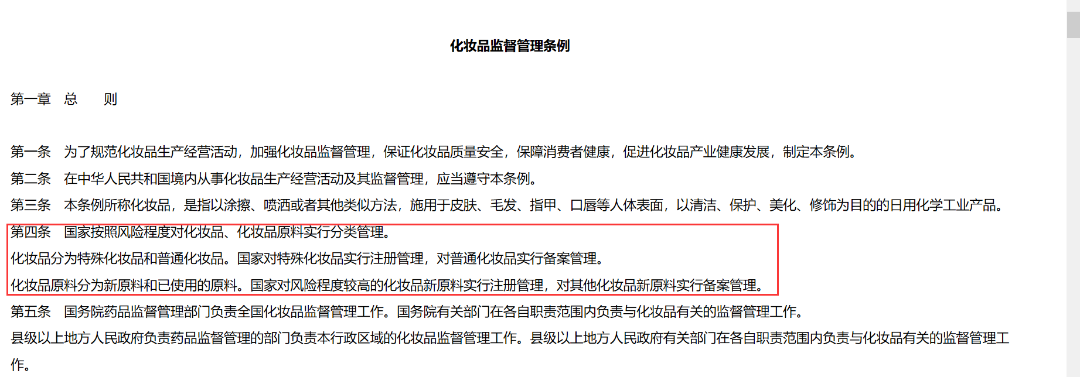 这也就意味着,在化妆品中的使用限量为0.5%的苯乙基间苯二酚,若以其他使用目的添加于普通化妆品配方中,则需结合《化妆品监督管理条例》第四条规定来分析,即国家对特殊化妆品和风险程度较高的化妆品新原料实行注册管理,对普通化妆品和其他化妆品新原料实行备案管理。