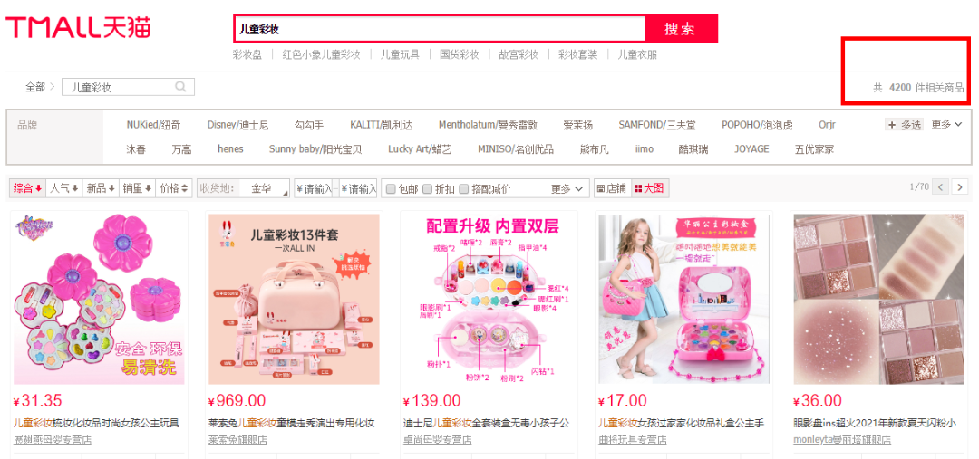 事实上,电商平台上属于儿童化妆品却未经注册备案的现象并非个案。记者在淘宝上按照综合排序,抽样20款产品,仅1款品牌名为“彩促”的儿童彩妆产品显示批准文号(鄂G妆网备字2020000837)。