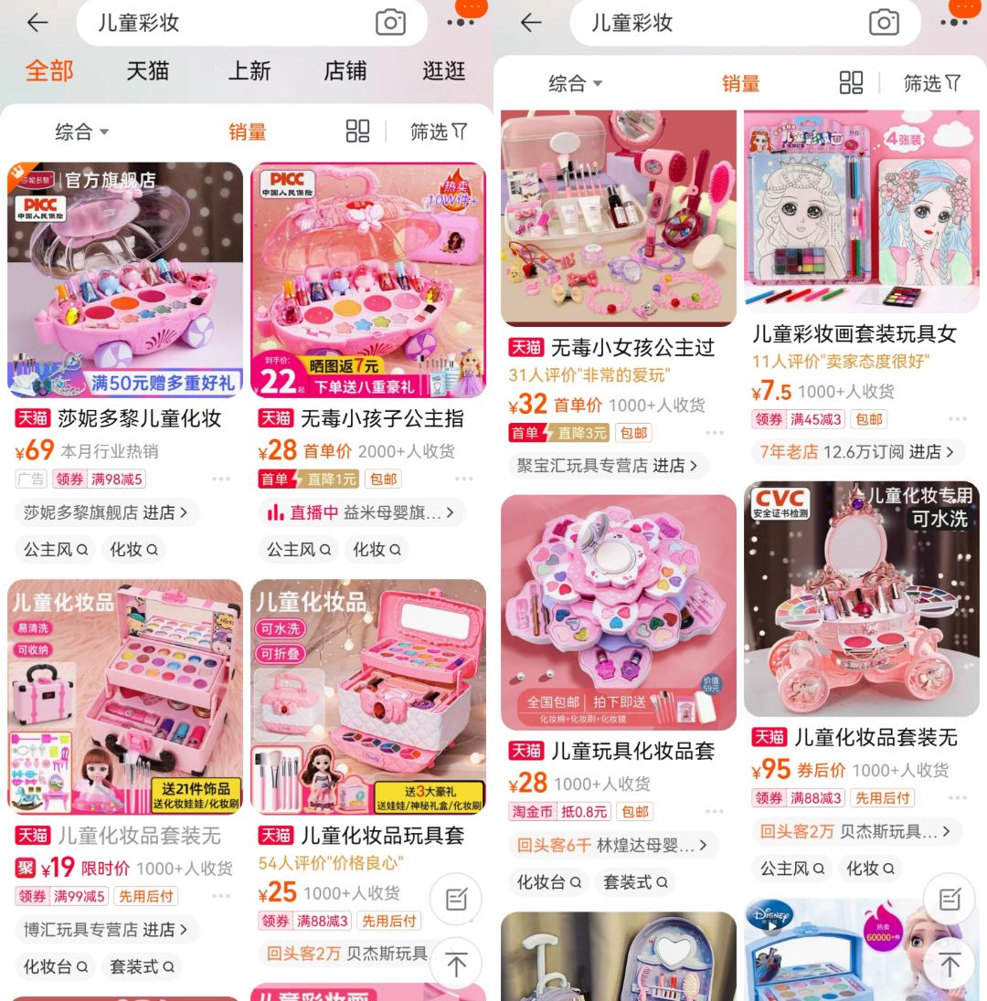 再来看如今市面上售卖的“专为儿童设计”的化妆品,多以玩具之名在销售。