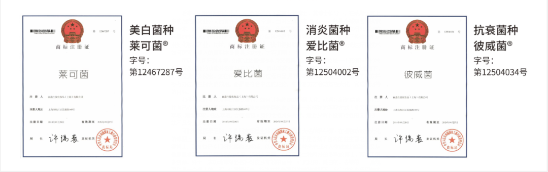可能我是挺幸运的,很多朋友都是全球各个领域鼎鼎大名的科学家。在植物功效极大化的课题上,发现必须藉由微生物科技,才能够更上层楼。于是去找了台湾的益生菌之父许庭源博士,因为他是专门研究菌类的权威,以各式各样的菌种来完成对人体健康的维护。又从他那里学到了很多微生物的知识。还找来闺蜜,专门研究生物科技的陈秋妏博士,整合了很多资源。终于,成功地筛释出各种对皮肤有效的菌种,如抗炎的、美白的、去皱的……筛释菌种是一个很大的工程,也需要运气,植物在这些菌种的精准发酵下,会完成多少所期待的目标,这可是要耗费大量时间做实验,才能累积成果。而在2012年,我们幸运地筛释出三个菌种,取名为:莱可菌、彼威菌、爱比菌,并用这些名字注册了商标,在2014年获得相关专利证书。