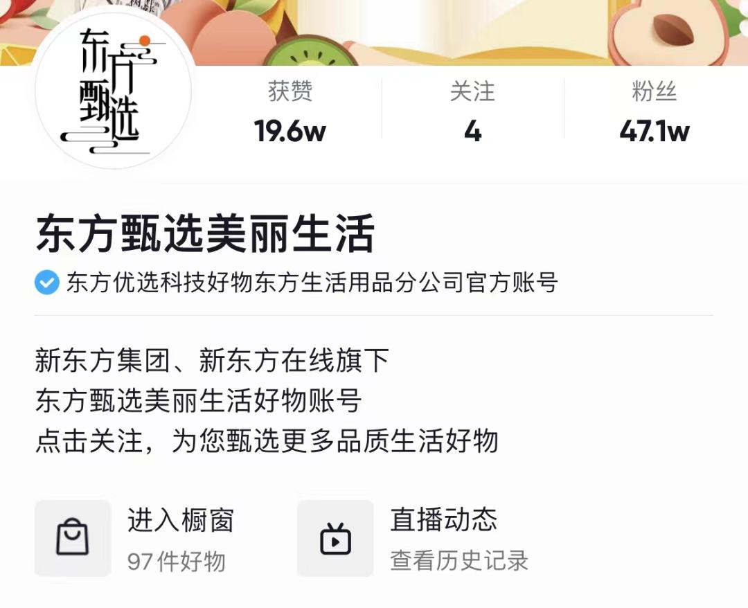相关数据显示,“东方甄选美丽生活”开播后的前6场带货直播GMV达572万,粉丝数也从不到两万飙升至36.4万,目前粉丝数已累积至47.1w,在开播不到半个月的时间内,成绩可圈可点。