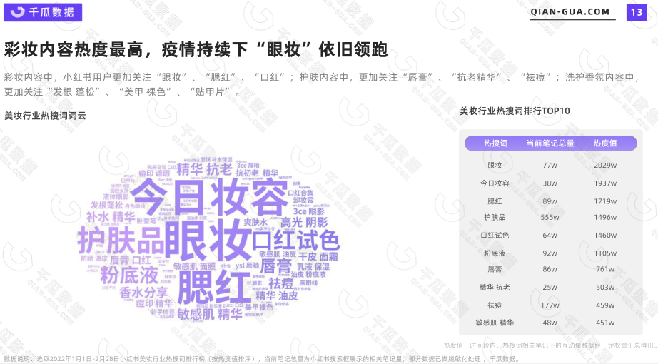 据果集·千瓜《2022年千瓜活跃用户画像趋势报告》显示,“眼妆”占据小红书用户热搜词榜首。