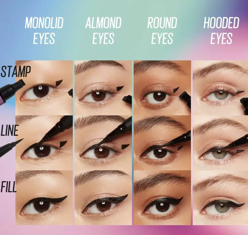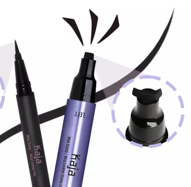 也有做成双头印章笔或是配在普通眼线笔另一头的。不过目标都是,让左右眼的眼尾粗细一致,免去化妆新手在镜子前左看右看左补右擦的痛苦。