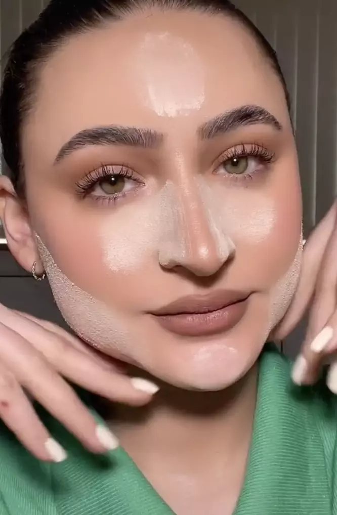 首先,用粉底铲侧面均匀蘸取粉底液,在脸上大面积刮涂(参考给墙刮腻子),最后用美妆蛋或者粉扑拍开。