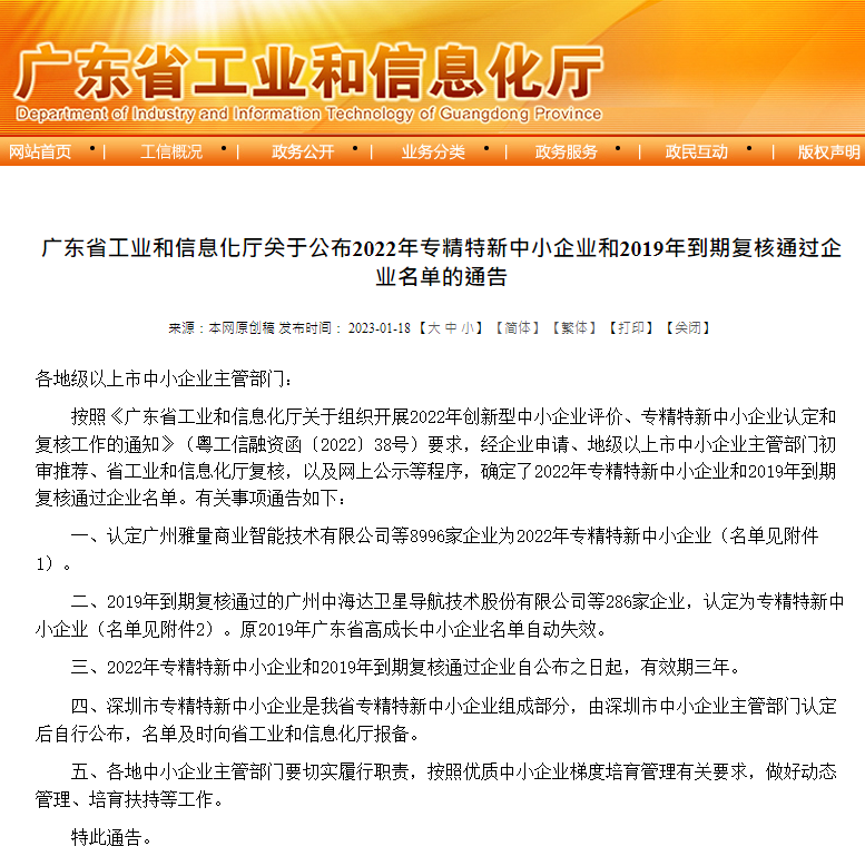 2023年1月18日,广东省工业和信息化厅正式公布2022年专精特新中小企业入选名单,经专家综合评定并公示,广东丸美生物技术股份有限公司及全资子公司广州丸美生物科技有限公司双双荣获广东省专精特新企业荣誉称号,目前该称号在美妆行业内获得者凤毛麟角,充分展示了丸美生物的自主创新力与核心竞争力。