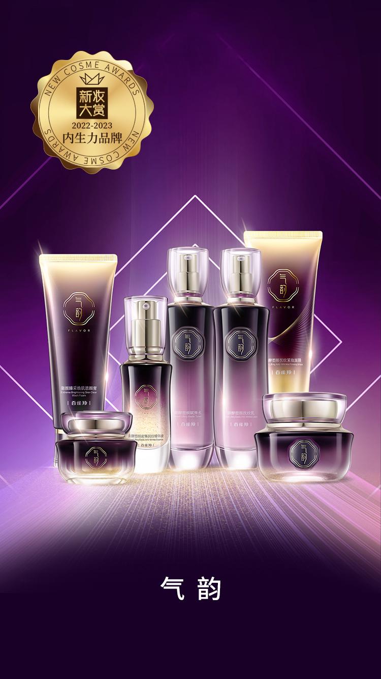 气韵是百雀羚集团旗下以"专利科技+功效成分+本草养肤”三位一体功效型护肤定位品牌,创立于2010年。