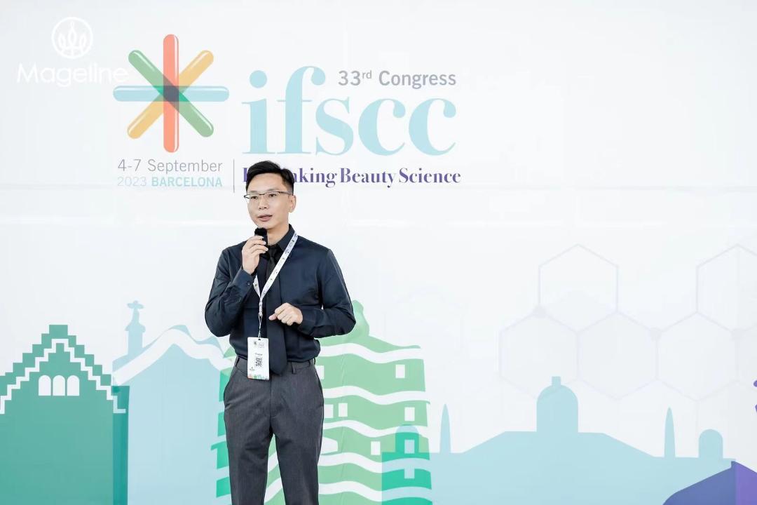9月4日至7日,被誉为化妆品技术领域“诺贝尔奖”的IFSCC大会在西班牙巴塞罗那举行,作为IFSCC金牌会员的麦吉丽,在本次会议发表了最新的抗衰成果,并展示了以“皮肤微生态宏基因相关研究”、“大米酵滤与植物提取物复配协同增效的研究”、“关于一种可溶性鲟鱼胶原蛋白的抗皱研究”为主要研究方向的科研海报,麦吉丽首席研发官、China-SCC科技部部长杨帆也应邀于会上发表了关于麦吉丽平衡水的皮肤微生态宏基因组研究的相关主题演讲。
