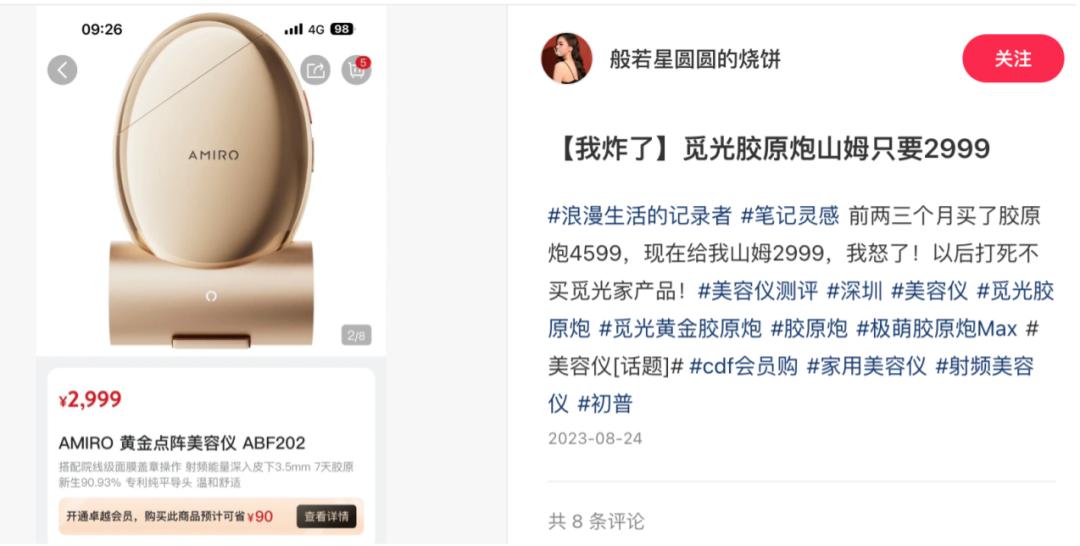 而升级后的AMIRO觅光胶原炮,也遭消费者吐槽为“儿戏”。