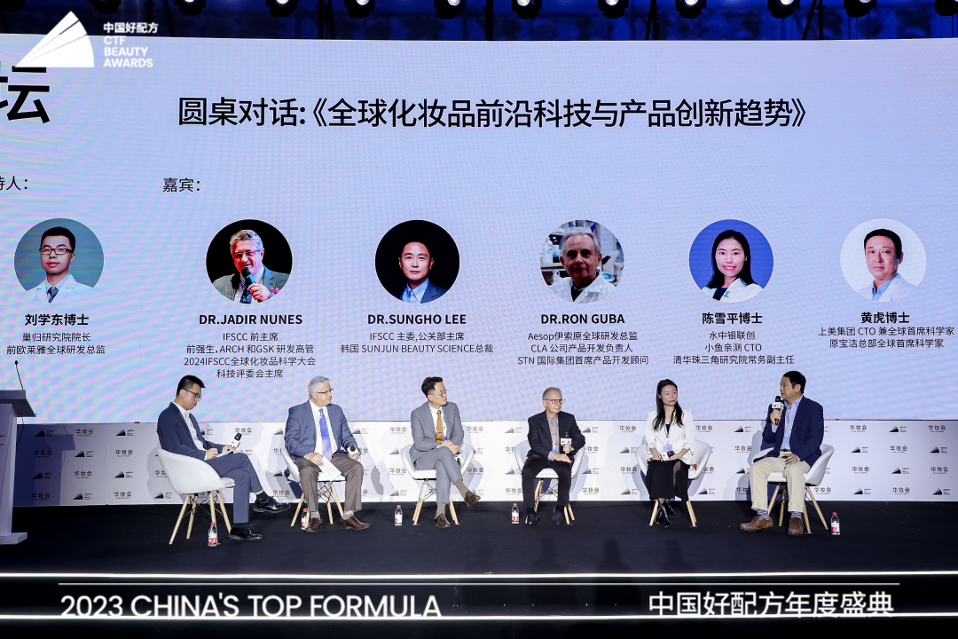 基于此,前IFSCC主席/2024IFSCC全球化妆品科学大会科技评委会主席:Dr.Jadir Nunes、IFSCC主委:Dr. Sungho Lee、前伊索研发总监:Dr.Ron Guba 、水中银联创&小鱼亲测CTO:陈雪平博士、上美集团全球首席科学家&原宝洁全球首席科学家:黄虎博士、巢归研究所院长、前欧莱雅全球美白研发总监:刘学东、一起探讨了关于全球的最新科技趋势、中国的合成生物技术、中外之间的科技差异与差距、原料创新等技术型话题,给予了行业新的启发。