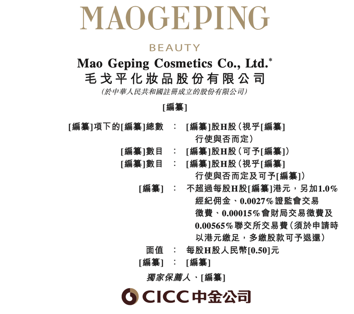 10月10日,毛戈平化妆品股份有限公司(以下简称“毛戈平”)更新招股书,再次向港交所主板提交上市申请书,中金公司担任独家保荐人。该公司于2024年4月8日首次向港交所递交招股书,因满6个月,于10月8日失效。
